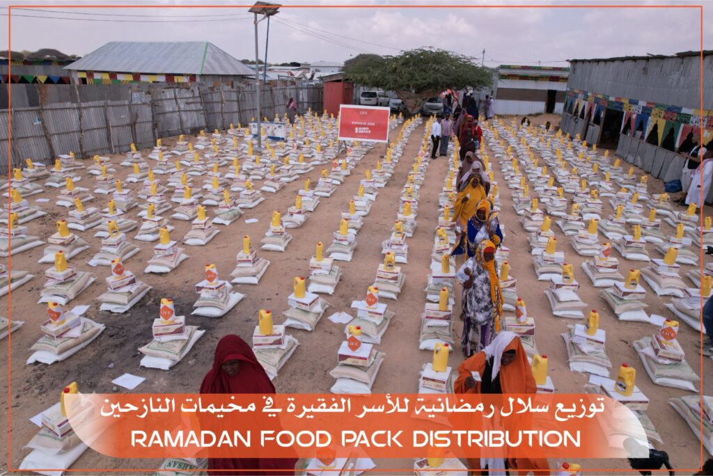 قامت منطمة التنمية الاجتماعية في الصومال بتوزيع سلال رمضانية للأسر الفقيرة في الصومال خاصة في مخيمات النازحينخارج العاصمة الصومالية مقديشو بتمويل كريم من الرابطة الإسلامية الفرنسية للتربية (LIFE )